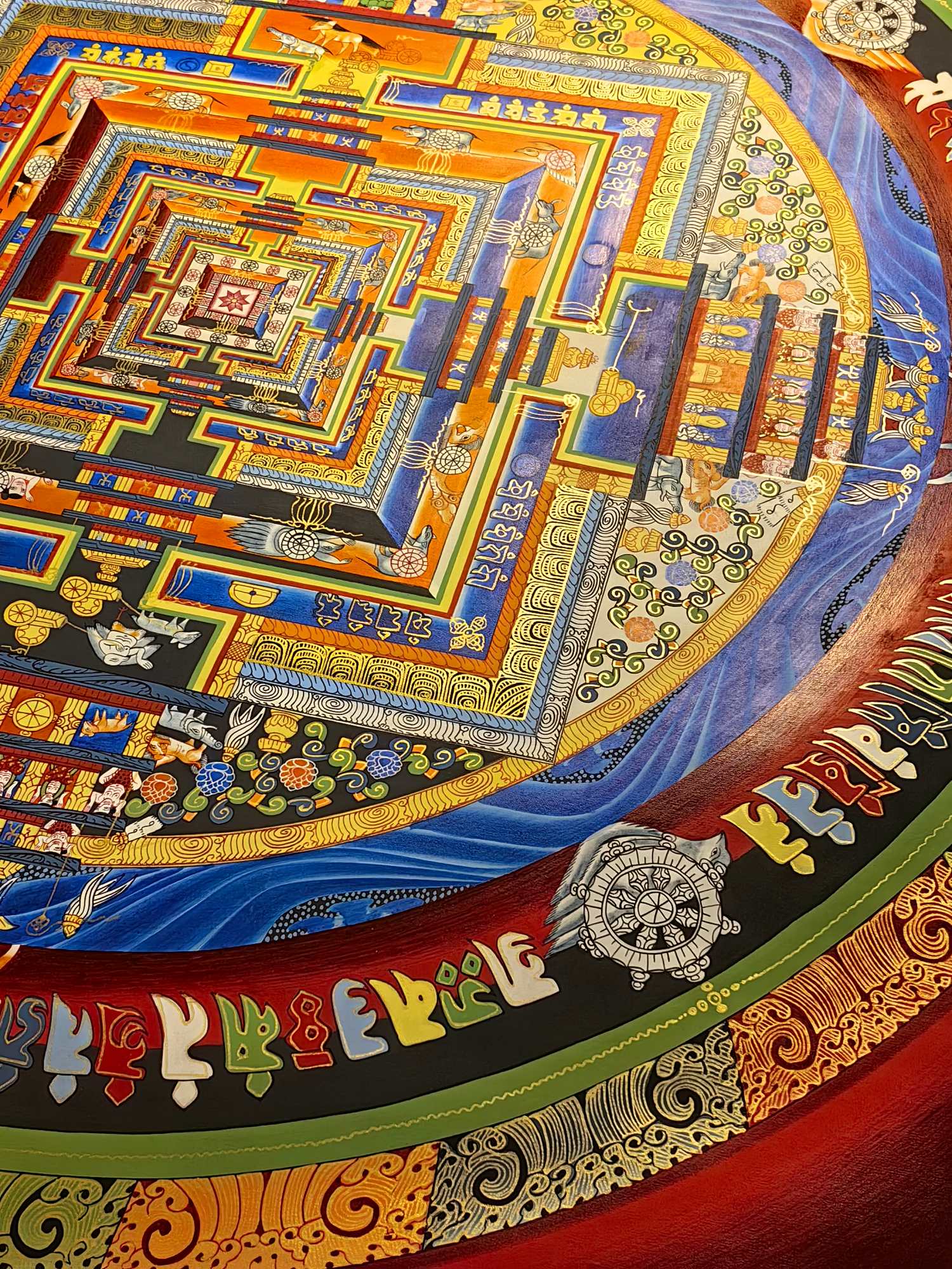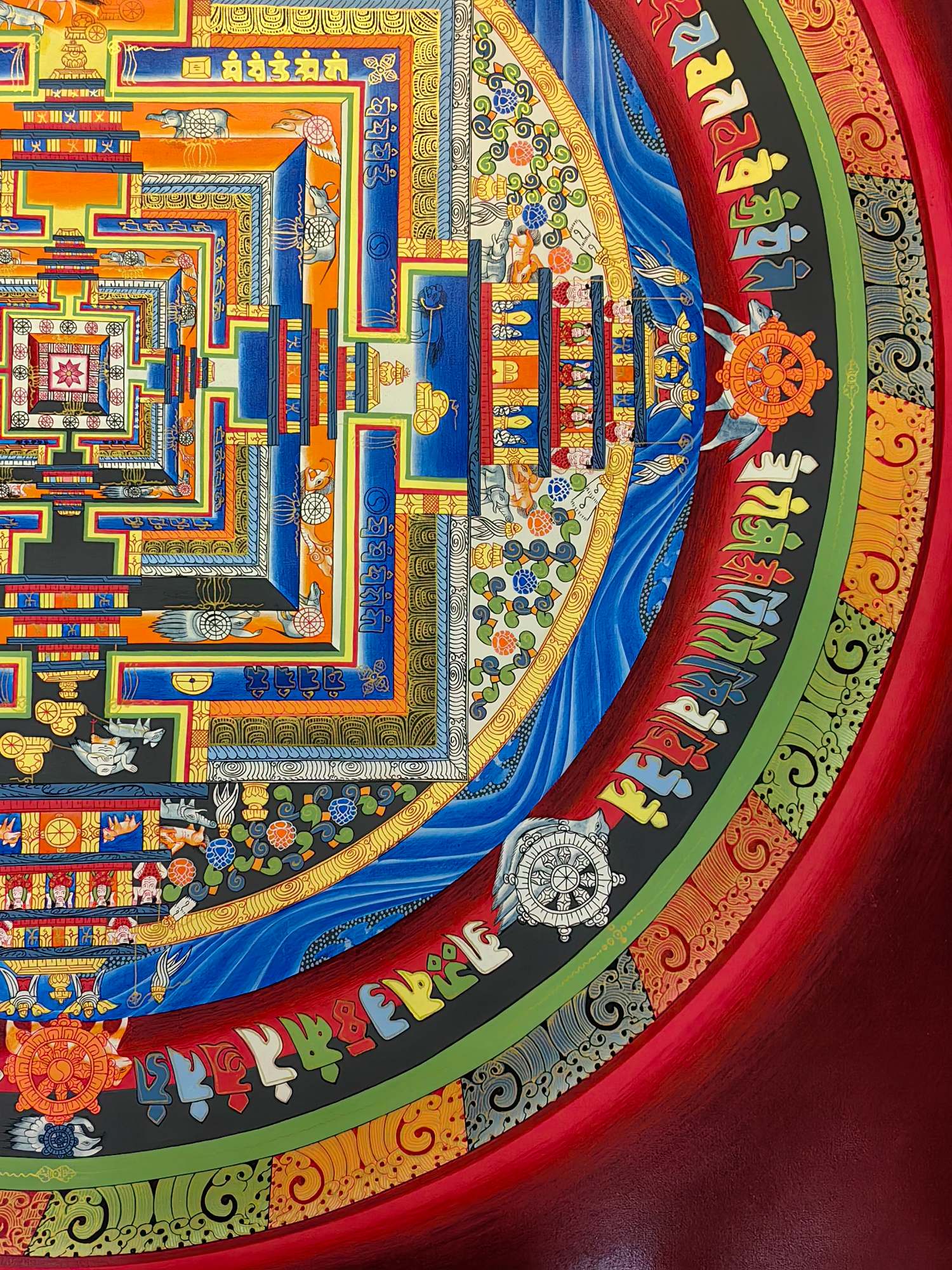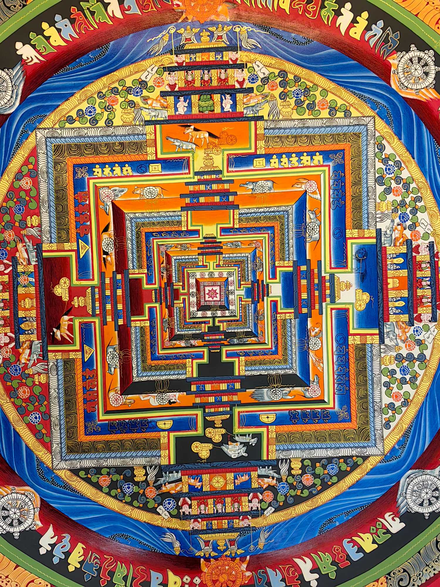 一、寓意深解:时轮金刚坛城的“修行与时间密码” 时轮金刚坛城是藏传佛教对**“时间本质、轮回秩序、修行圆满”**的终极艺术表达: – 「宇宙缩影」:多层几何结构象征“三界六道”的宇宙秩序,每一道层级都是修行者从“凡俗迷障”到“究竟觉悟”的进阶路径; – 「时间智慧」:坛城暗含“时轮”教义,寓意“掌控时间、超越轮回”,是对“生命在时间中修行,最终破迷开悟”的视觉化诠释; – 「圆满祈愿」:坛城的对称结构与繁复纹饰,寄托着“消弭业障、资粮圆满、成就佛果”的深厚祈愿,是精神修行者的“宇宙级护持图腾”。 二、工艺赋能:让“寓意”在传世匠艺中鲜活 – 纯手绘的虔诚:匠人以纯手工技法勾勒每一处细节(梵文咒轮的力量感、几何层级的秩序感、吉祥八宝的祈愿感),让“修行路径”的寓意通过笔触的温度具象化; – 天然矿彩的永续:天然矿物颜料让色彩历久弥新,坛城的红(象征智慧)、蓝(象征空性)、金(象征圆满)在岁月中始终鲜明,寓意“修行的智慧与圆满永不褪色”。 三、收藏价值:“寓意+工艺”的双重精神资产 这幅唐卡是**“精神寓意+艺术稀缺”**的双重价值载体: – 对宗教修行者:它是“时轮教义”的可视化修行工具,坛城的每一层都是“破迷开悟”的精神指引; – 对艺术藏家:它是藏传佛教艺术“寓意深度+工艺高度”的标杆,“时间与修行”的核心寓意让其在收藏市场中具备独特的文化溢价; – 对文化投资者:它是“信仰经济+艺术经济”的交叉资产,寓意的不可替代性与工艺的唯一性,使其成为可传世的精神与物质双增值藏品。 让这幅承载“时间智慧与修行圆满”的时轮金刚坛城,成为你精神世界与收藏序列中“破迷开悟”的传世符号——它的寓意,值得用一世去品读。